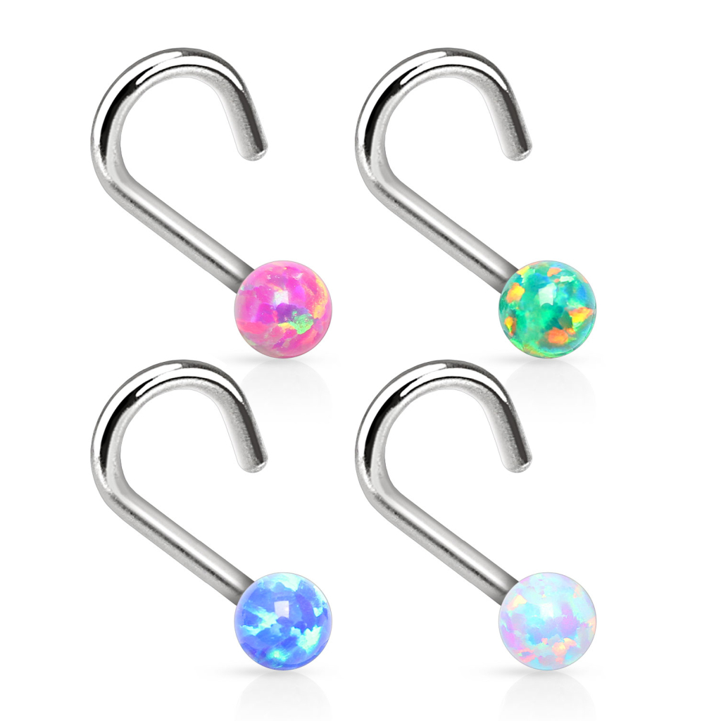 Ezzel a gyönyörű opál köves kirakással díszített orr piercinggel remek első benyomást tehetsz. Az apró opálkő 2 mm nagyságú, golyó alakú és négy különböző színben is elérhető: rózsaszín, zöld, kék és fehér. Mindegyik opál egyedi, mivel természetes kövekről van szó. Úgy vélik, az opál inspirál, belső békét és szerelmet hoz. Ha csak a szépsége nem lenne elég, számos egyéb oka is van annak, hogy beszerezd ezt a nagyszerű ékszert.