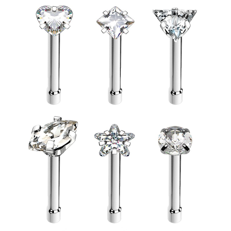 A szerkezet orvoci acélból készült, és 6 mm hosszú, átmérője pedig 0.8 mm - tehát könnyedén ki és be tudod rakni az ékszert, attól függetlenül hogy a lyukat szúrták vagy lőtték. A kis golyó a szár végén (ami alig nagyobb, mint a szár maga) pedig megakadályozza, hogy kiessen az ékszer az orrodból, de eltávolítása még így sem fájdalmas.