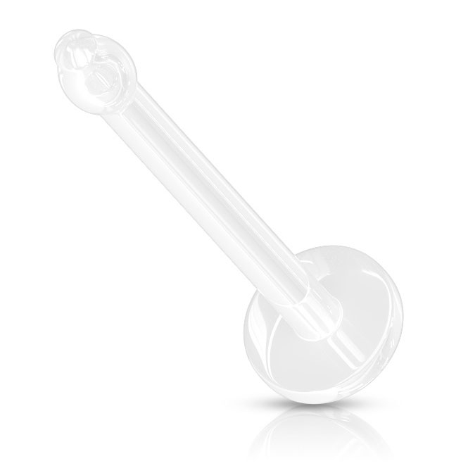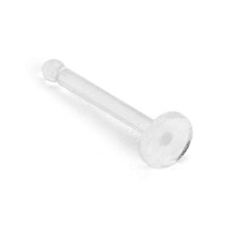 Ez a retainer átlátszó műanyagból, más néven bioflexből készült, és mindössze egy egyszerű rúdból áll, aminek a vastagsága 0.8 mm, a hossza pedig 7 mm. Egy apró kis golyó van a végén, ami csak lehelletnyivel vastagabb, mint maga a rúd. Az ékszer arra szolgál, hogy meggátolja a piercing benövését, helyes használat mellett, A másik végén egy 2 mm átmérőjű lap van, ez kerül az orr belsejébe.