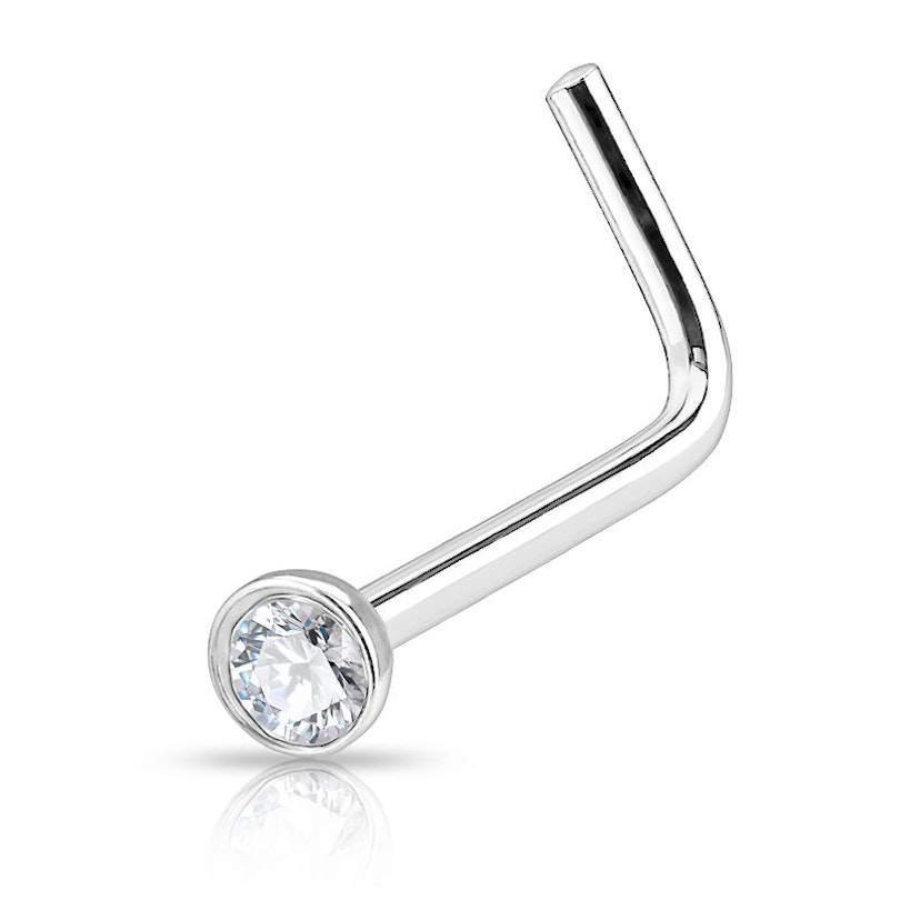 Az ékszer dizánja az orrcsavar és a hagyományos piercing között van. A tetejétől mérve 6 mm hosszú L-alakú szárnak köszönhetően tökéletesen illeszkedik az orron lévő lyukba. Két különböző méretben készült, válaszd ki a neked megfelelő darabot.