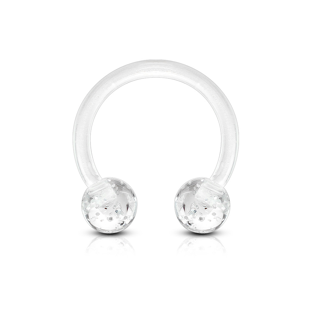 A képen egy csodaszép, akrilból készült patkópiericnget láthatsz, amelyet egy csillámos golyó díszít. Az ékszer különböző színekben, például kékben, pirosban és rózsaszínben kapható. A golyó színe eltér a szár színétől: a kék modell szárának színe világosabb, mint a csillámos golyó. A szár meglehetősen rugalmas, így a behelyezés egyszerűen fog menni.