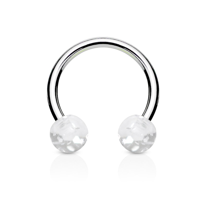 Patkó piercing, csillámos akril golyókkal