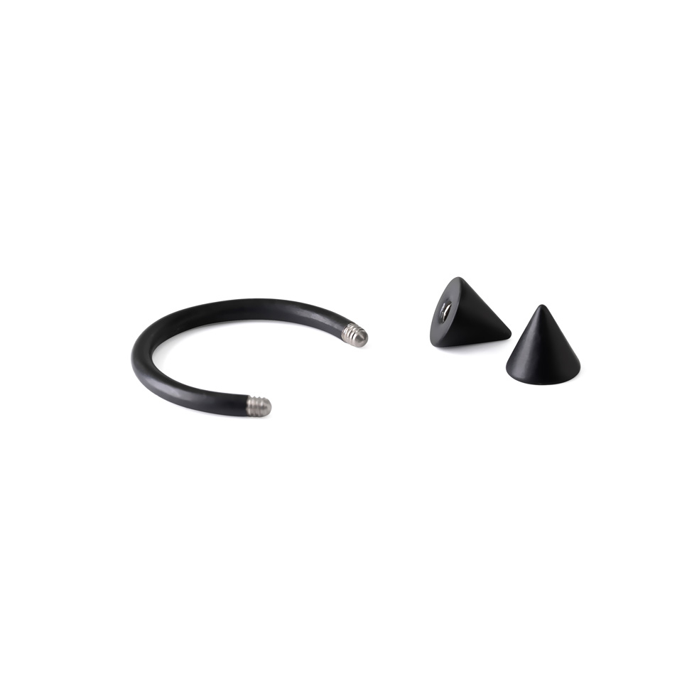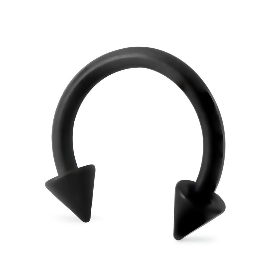 Patkó piercing, matt fekete színben, tüske végekkel