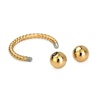 Ez a patkó alakú piercing szokványosnak tűnik, de ha jobban megnézed, láthatod, hogy a két golyó közötti rész nem mindennapi. A szára úgy néz ki, mint egy csavart kötél. Ez más hangulatot sugároz, és stílusosabb megjelentést kölcsönös, hiszen nem úgy néz ki, mint egy sima piercing.