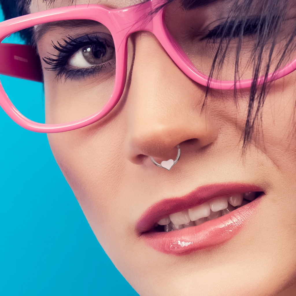A karika két különálló, orvosi acélból készült részből áll: egy észrevehetetlen zárból és egy szív díszből. A szíven apró nyílás található, így bármikor le lehet szedni a karikáról. Az apró díszt a gravitáció tartja az ékszer alsó részén.