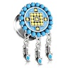 Ha hallottál már az ősi azték civilizációról, a piramis ismerős lesz. Az ékszert díszítő apró sárga gyöngyök egy azték piramist formáznak. A négy külső pont jelképezi a piramis tetején lévő templomba vezető lépcsőket. A templom körül kék zománc van, a tágító szélén is kék gyöngyök futnak végig.