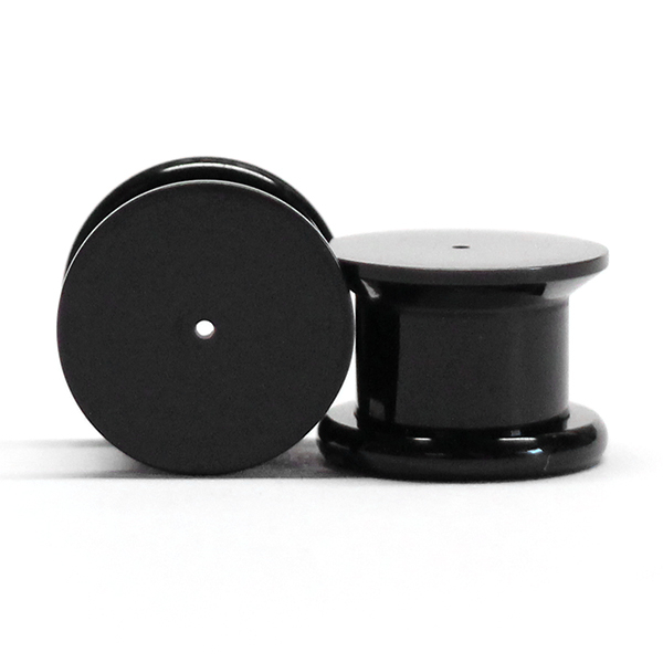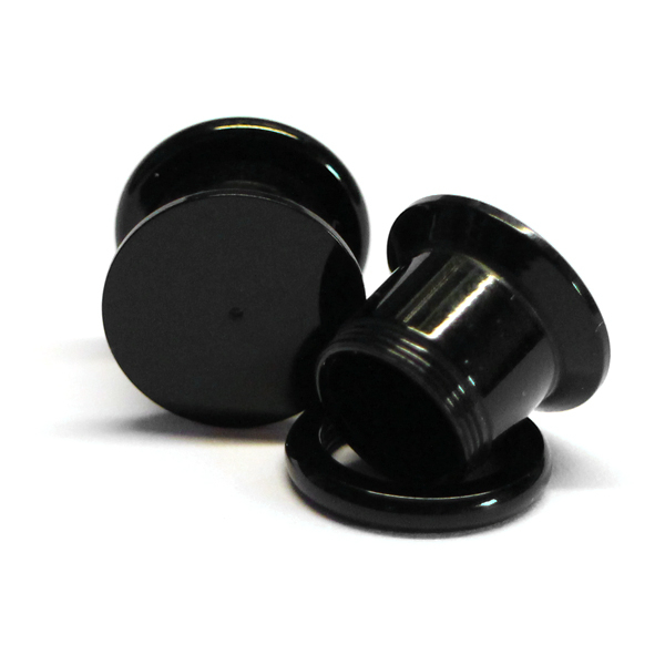 A plug fekete akrilból készült, hátul belső menettel, hogy megkönnyítse a behelyezést és kivételt. Az elülső rész teljesen lapos és egy apró 0,8 mm-es lyuk található rajta. Ebbe a lyukba be tudod tenni szinte bármelyik régi fülbevalódat.