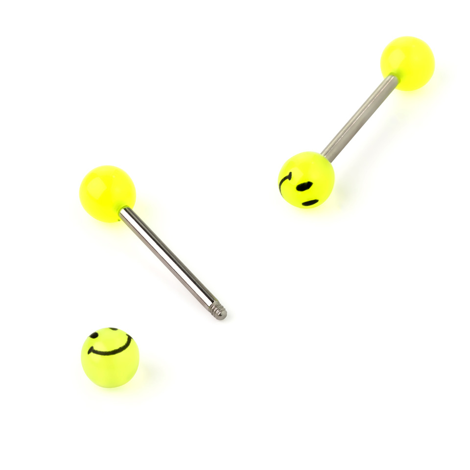 Ez az aranyos és vicces, mosolygós arccal díszített nyelvpiercing egyszerre világos és sötét.