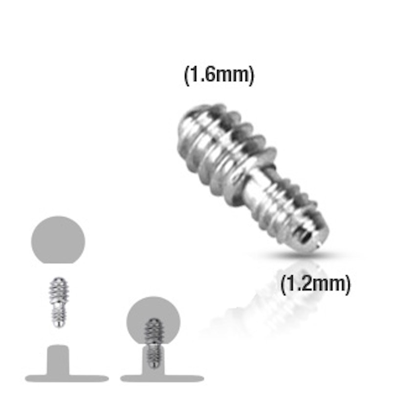 A kiegészítő egyik vége 1.2 mm (akárcsak a szabvány dermal anchor-ök), a másik vége pedig 1.6 mm vastagságú. Ezzel a legtöbb menetes golyót dermal piercingként is tudod majd használni, nem lesz gond a méret-különbséggel.