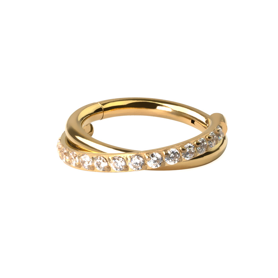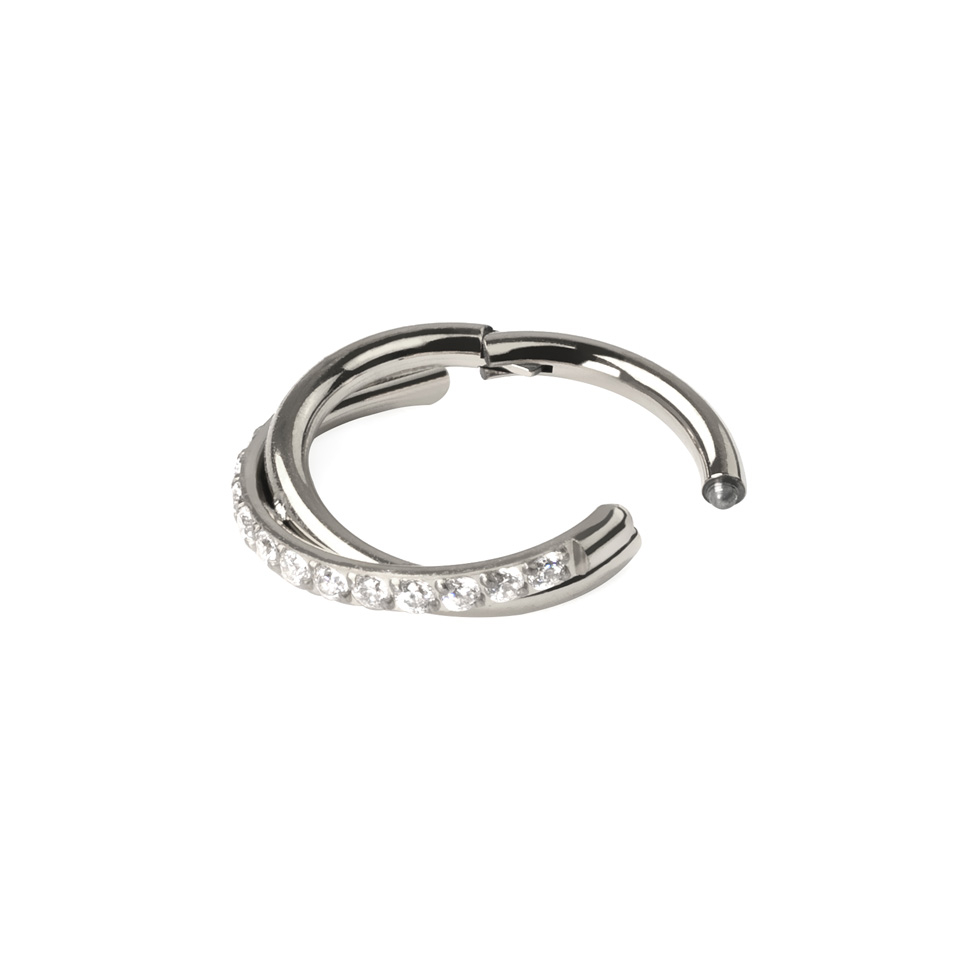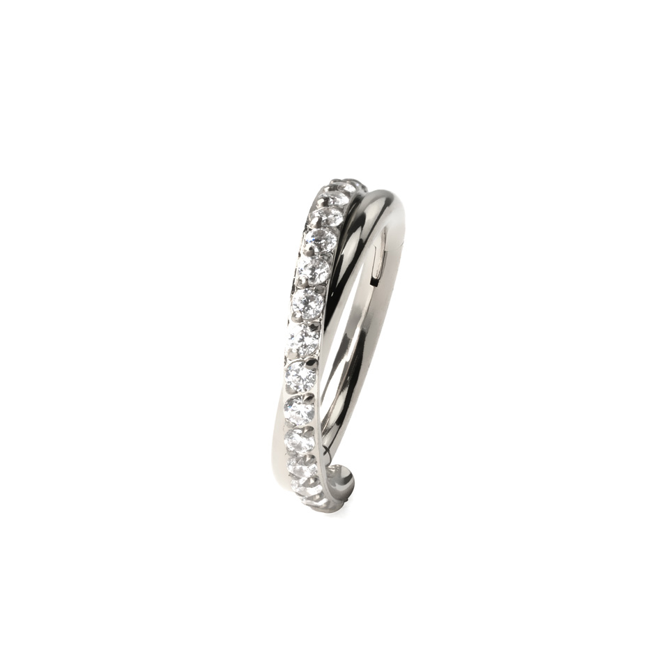 A karika kővel kirakott dizájnja elegáns csillogást kölcsönöz fülpiercingednek, legyen az helix, daith, rook, vagy fülcimpa.