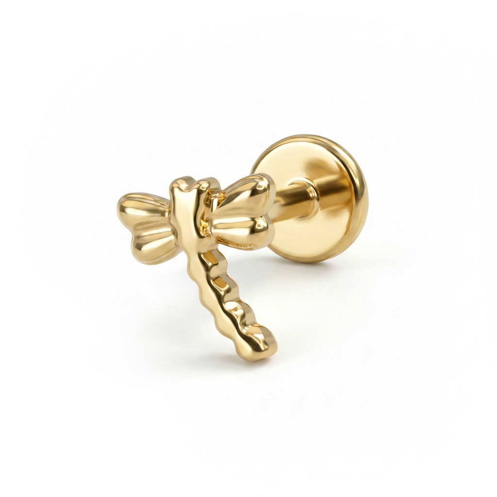 Ez az aranyos labret egy szitakötő mintával van díszítve. Az ékszer titánból készült, amely kényelmes viseletet biztosít, még érzékeny bőrűek számára is. Kecses méretének köszönhetően (a szitakötő 5,8 mm-es), különféle fülpiercingekben is hordható. A labret push-in zármechanizmussal rendelkezik, így igazán egyszerű rögzíteni a piercingben.