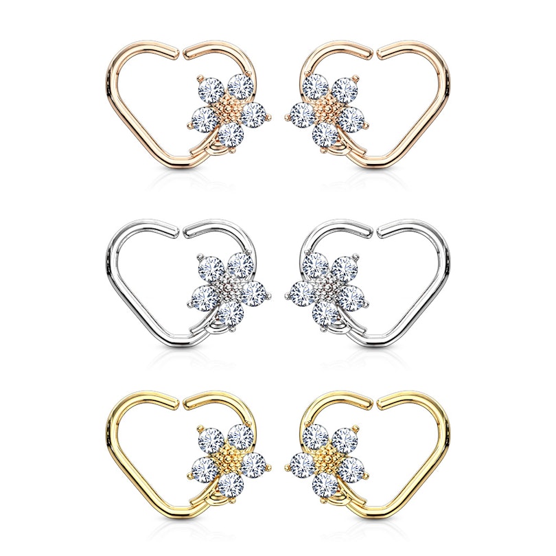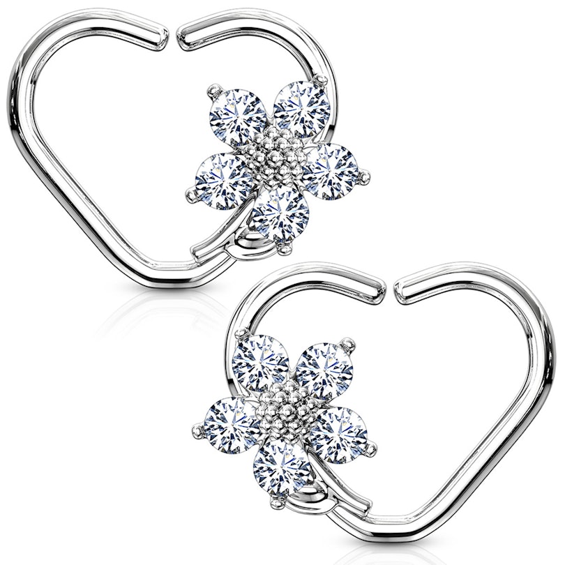 Név: Szív formájú fülpiercing csillogó köves virággal
