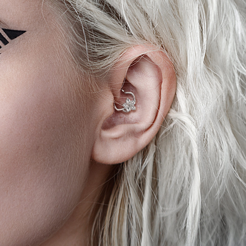 Ahogy a fenti képen is látod, ez a fül piercing szív alakú és egyik oldalán egy csillogó cirkónia kövekkel kirakott virág dísz ül. Mivel ez a dísz csak az egyik oldalon található, fontos hogy eldöntsd melyik füledben szeretnéd hordani mielőtt megrendeled. Ha nem tudsz dönteni, vagy több fülpiercinged is van akkor természetesen több variációt is rendelhetsz, akár a színt is meg tudod változtatni. Ennek a szívnek a belső méretei: 8mm széles & 8mm magas.