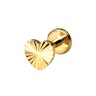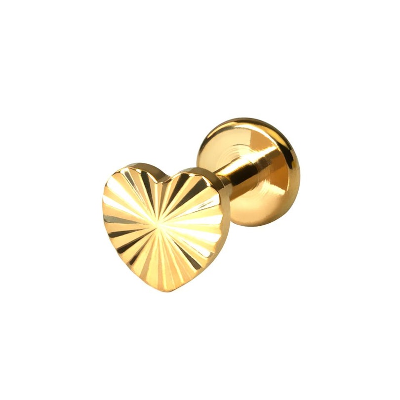 Ez a lenyúgöző szívformájú labret egy szépen textúrált felső résszel rendelekzik, ami a középpontból kiinduló finom vonalakkal díszített, és a fényt megragadó, feltűnő hatást keltenek.