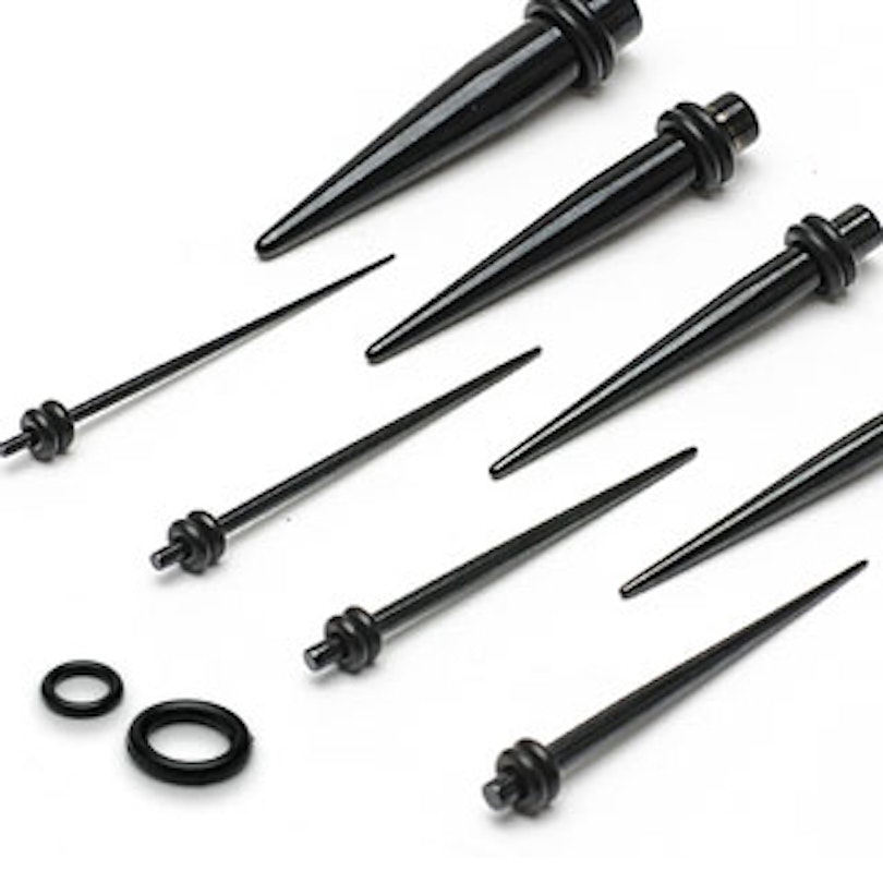 A taperek orvosi acélból készültek és fekete titán bevonatot kaptak. Ideális eszközök lehetnek fültágításhoz, főleg ha nincs kedved többfélét venni. A taperekhez minden méretben két o-karika jár. Ezek tartják biztonságosan a füledben a tapert és megakadályozzák, hogy kiessen.