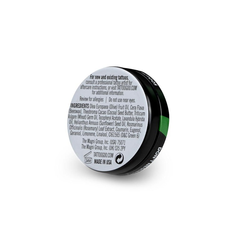 A Tattoo Goo a világon legjobban menő tetoválás utóápoló. Ez a kenőcs 99%-ban természetes összetevőket tartalmaz, semmilyen adalék nincs benne ami káros lehetne a bőröd számára, mint pl a lanolin. Kifejezetten tetoválások ápolására fejlesztették ki, és megfelel az amerikai és német előirásoknak, az országokban ahol tesztelték.