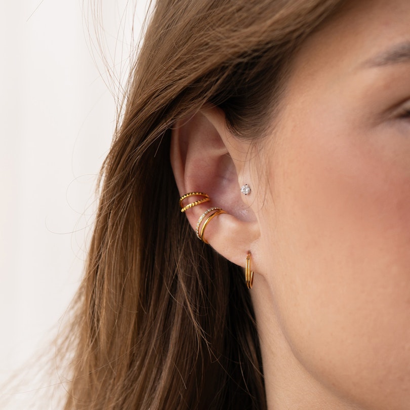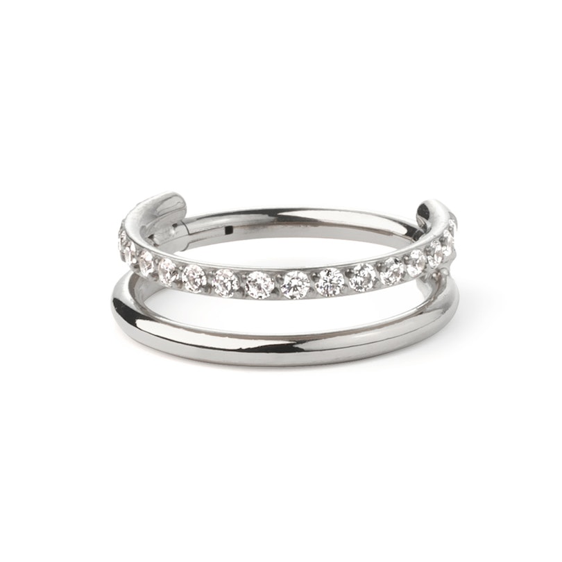 Ez a szokatlan darab két karikából áll, az egyiken egy kősor kapott helyet. A két karika egy szárban fut össze, ezt helyezzük a piercingbe. Titánból készült, hipoallergén és időtálló. Elérhető különböző átmérőkben, illetve arany és ezüst színben. Többféle fülpiercingben hordható, bármelyikben is hordod, mesés kiegészítője lesz fülednek.