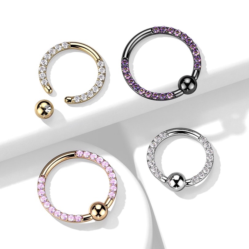 Ritkán látni ennyire elegáns golyózáras karika ékszert. Ragyogó cirkónia kövek diszitik az elülső részét a golyó két oldalán, ami igazán feltűnővé teszi. Főleg septum vagy fülpiercingekhez ajánljuk. De a jó hireknek itt még nincs vége: ez a karika G23-as titánból készült, tehát a lehető legjobb minőséget kapod a piercingedhez. A titán piercingek biztonsággal viselhetőek minden bőrtipusnak, úgyhogy nyugodtan választhatod akkor is, ha allergiás vagy.