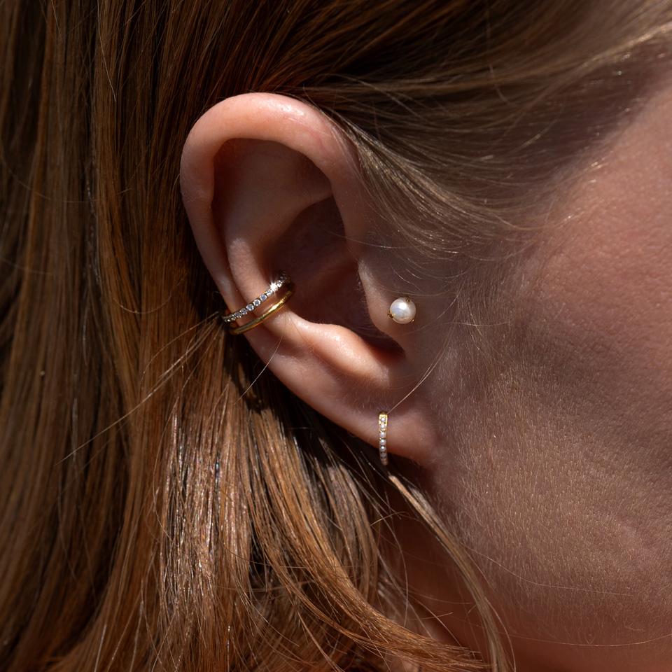 Implantátum minőségű, hipoallergén titánból készült, így az ékszer tökéletes érzékeny bőrre, továbbá biztosítja a hosszantartó kényelmet és az irritációmentes viseletet. Kapható arany- és ezüstszínben, valamint 8 és 10 mm-es átmérővel. Ideális helixbe, fülcimpába és más fülpiercingekbe.