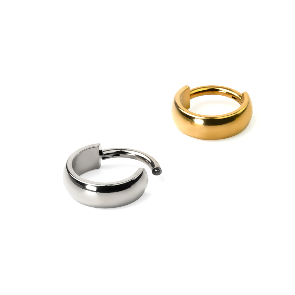 Ez a titán kapcsos karika egy hatalmas domború ívvel rendelkezik, ez teszi jellegzetes ékszerdarabbá. 4 színben kapható: ezüst, fekete, rose gold és arany.