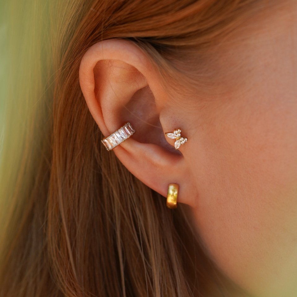 Elhelyezkedés: Tragus, Medusa, Madonna, Lower labret, Fülcimpa, Helix, Conch, Angelbite