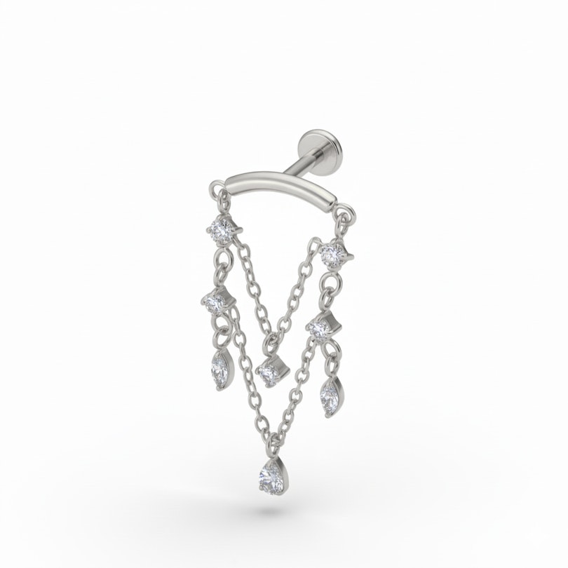 A csilláros titán labret a mozgásról szól. Az apró, kőberakásos cseppek finoman ringatóznak a labret alatt minden fejmozdulattal. Elegáns, de nem túlzó, tökéletes, ha szeretnél valami kicsit mást a mindennapi ékszereid helyett. Arany- és ezüstszínekben érhető el.