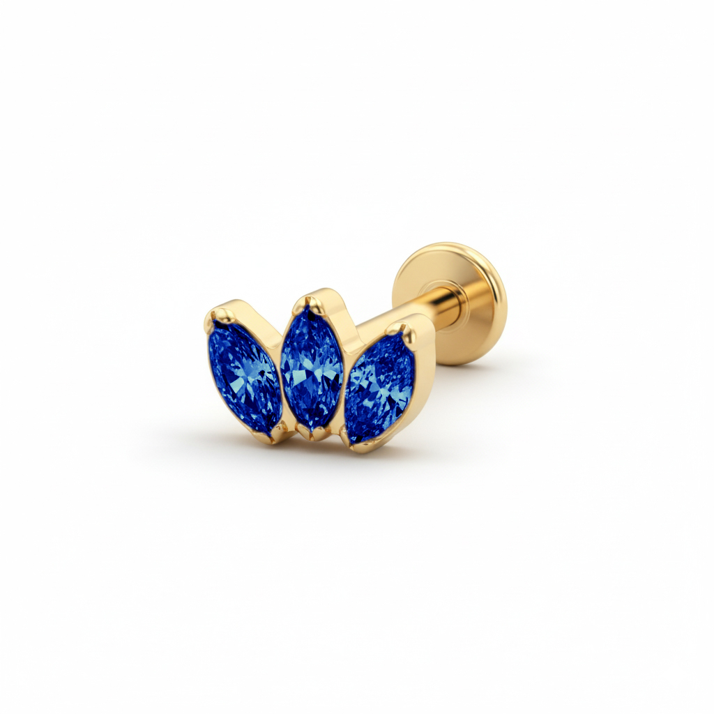 A titán labret három, választható színű kővel bebizonyítja, hogy az apró részletek képesek megváltoztatni az egész megjelenésedet. A három karmos foglalatú kő egy koronaként helyezkedik el, struktúrát kölcsönözve fülékszer-összeállításodnak.