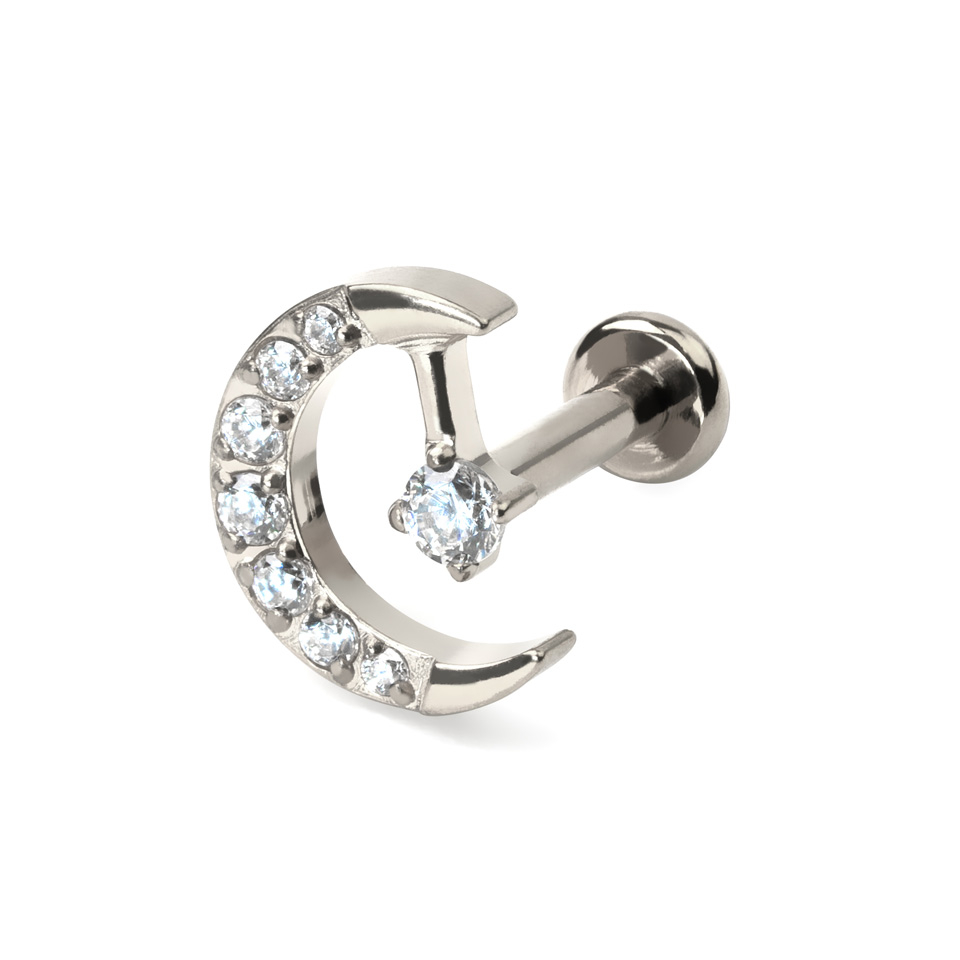 Titánból készült, ezért az ékszer tartós és alkalmas érzékeny bőrre. Választható arany és ezüst színben és különböző hosszúságban kapható. Ez az édes kis hold remekül fog mutatni fül- vagy ajakpiercingedben.