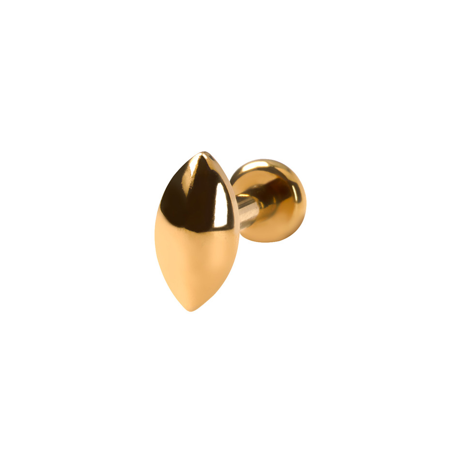 Ez a titán labret lekerekített, ovális dísszel rendelkezik, amely 3D-s hatást kelt. Belső menetes, és mivel titánból készült, hipoallergén és vízálló is. Ez az ékszer számos fülpiercingben, többek között tragus, helix és conch piercingben is csodásan mutat. Arany vagy ezüst bevonattal érhető el.