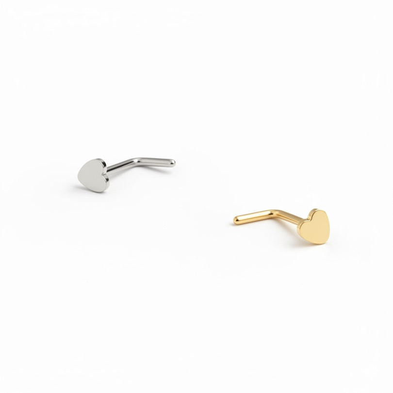 A szív alakú szegecs orrcimpapiercingekhez lett tervezve, és csendesen teszi a dolgát, de sose marad észrevétlen. Elérhető arany és ezüst kivitelben.