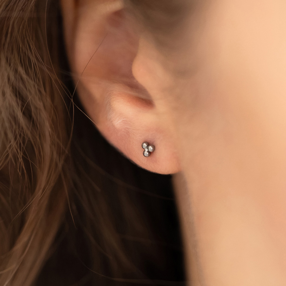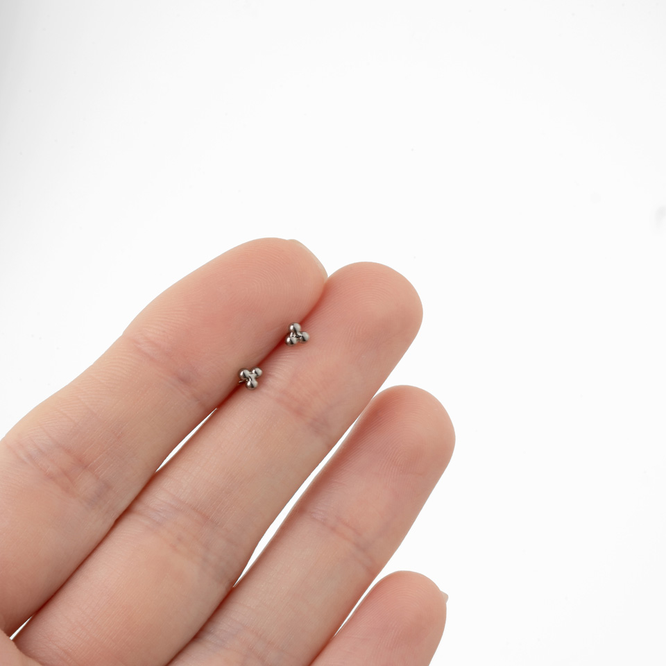A labretek nagyon sokoldalú ékszerek, amiket több piercingben is lehet hordani. Ez a minimalista dizájn pedig főleg egyszerűvé teszi, hogy más ékszerekkel együtt viseld. Akár a füledbe keresel valami újat, akár az ajakpiercingedet szeretnéd feldobni, jó helyen jársz. A háromszöget formáló bogyók mérete 3 mm, a szárat pedig több méretben választhatod.