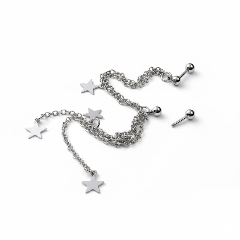 Tragus- és helix ékszer, csillagokkal
