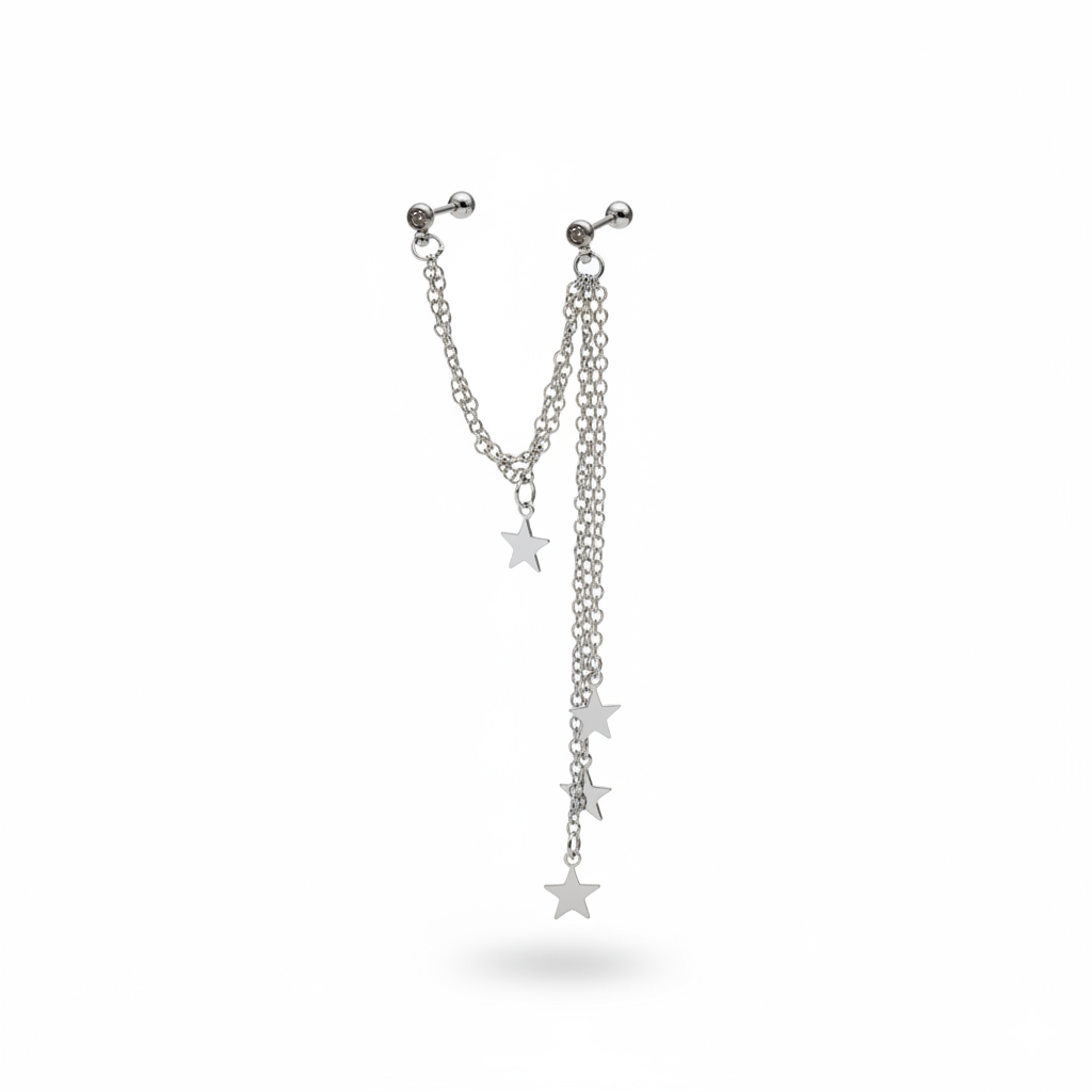 Tragus- és helix ékszer, csillagokkal
