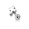 A kereszt méretei: magasság 55 mm, hosszúság 4 mm, vastagság 2 mm. Kifejezetten tragus piercingnek tervezték, a szára orvosi acél. A szár túlsó végén egy 3 mm-es menetes golyó van.