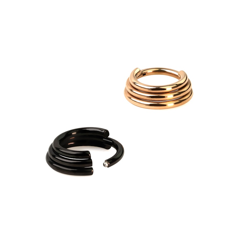 Ez az egyszerű, de mégis hatékony trió lenyűgözött. Valóban úgy néz ki, mint három különálló gyűrű, és ezt csak egy füllyukkal! Minden más ékszerrel kombinálható. A különleges formája miatt a gyűrűk szépen illeszkednek a fülcimpához. Kedves Bodymod csapat, kérlek titánból is!0