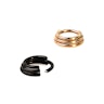 Bár ezt az ékszert 3 rétegű karikának nevezik, valójában 3 különálló karikából áll. Csak a középen elhelyezkedő karika kialakítása hagyományos. A másik két karika egy része hiányzik, így a lyukba csak egy kerül.