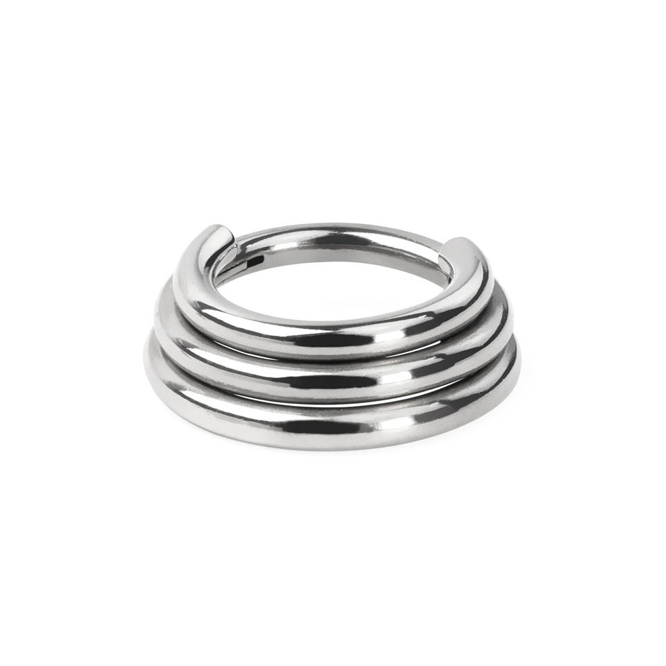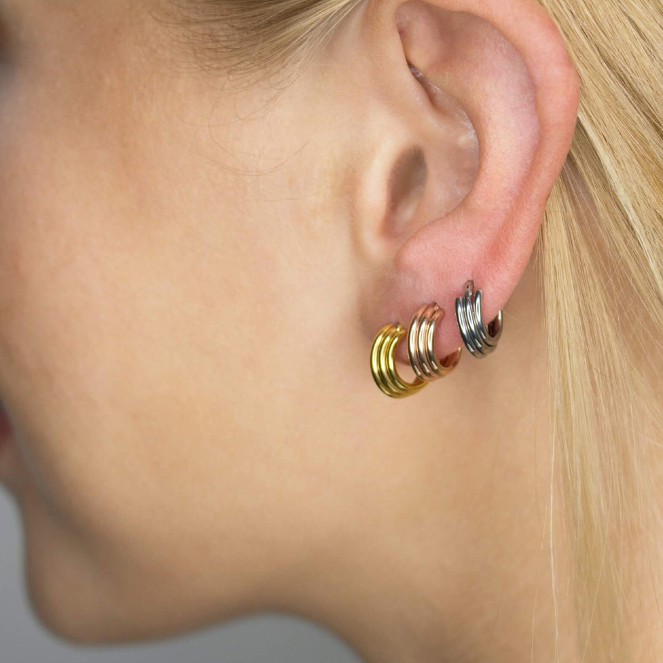 Bár ezt az ékszert 3 rétegű karikának nevezik, valójában 3 különálló karikából áll. Csak a középen elhelyezkedő karika kialakítása hagyományos. A másik két karika egy része hiányzik, így a lyukba csak egy kerül.