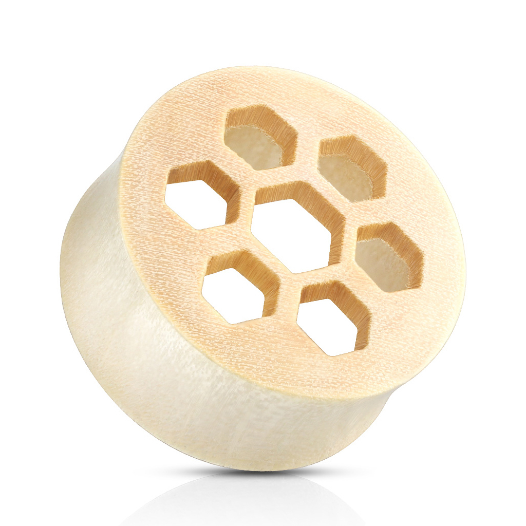 A plug különleges üreges hatszögletű dizájnnal van díszítve, ami a lépes mézre emlékeztető mintájú.