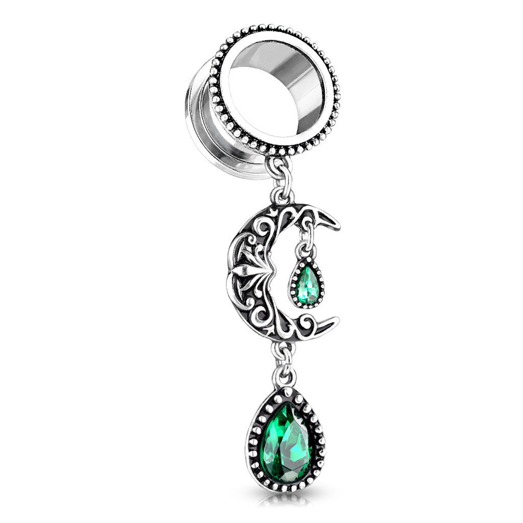 Név: Tunnel filigrán holddal és zöld kövekkel