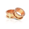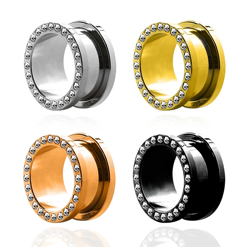 Attól függetlenül, hogy milyen színben rendeled meg, a dizájn ugyanolyan lesz - a tunnelt ugyanis számos áttetsző, csillogó cirkónia kő díszíti. Ezek a kis kövek ragasztva vannak, szóval csak óvatosan a fürdéssel, nem tesz jót nekik a víz.