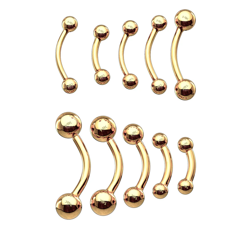 A hajlitott szárú ékszerek nagyszerű darabok, mert a test bármely részén hordhatóak. Csak arra kell figyelned, hogy a megfelelő méretben rendeld meg. Általában szemöldök, mellbimbó vagy intinpiercingként szokták hordani. Szemöldök piercingnek egy 1,2 mm-es szárvastagság ajánlott például.