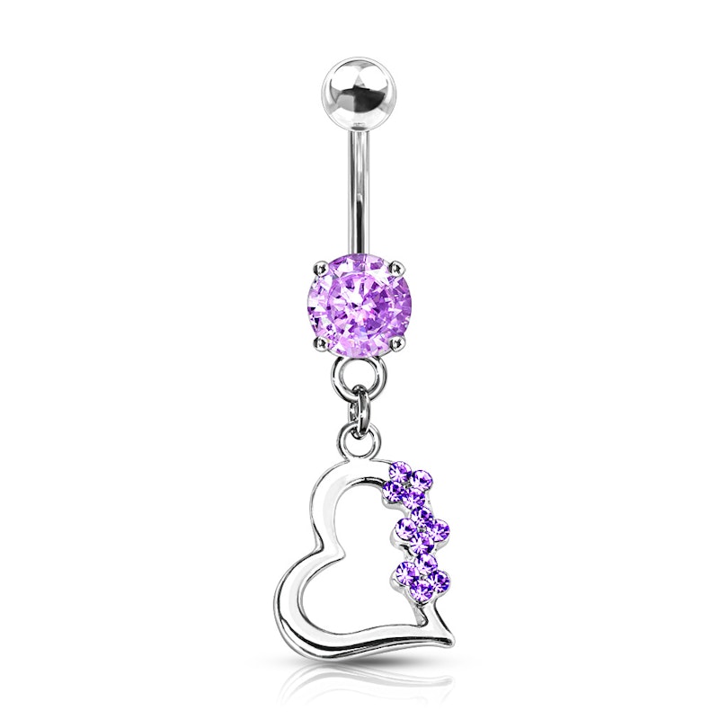 Köldökpiercing titániumból, szív medállal, kő díszítéssel.