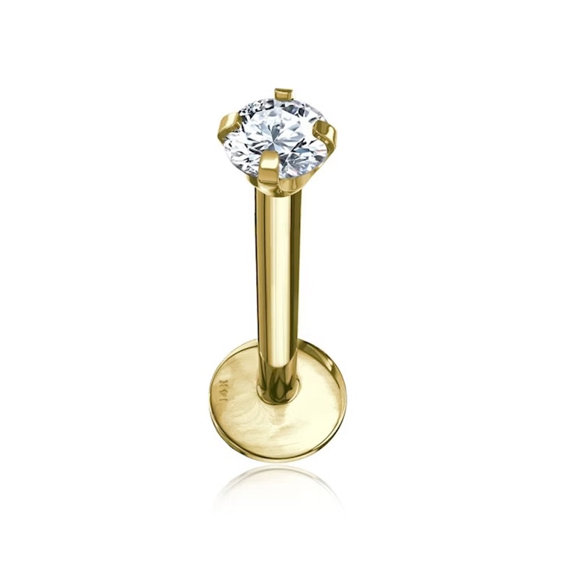 Név: Labret 14 karátos aranyból, belső menettel és kővel