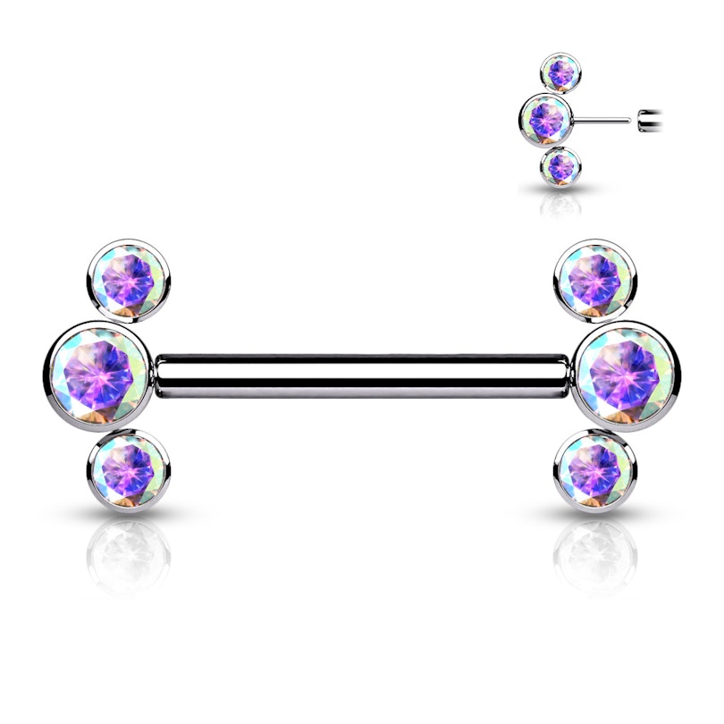 Menet nélküli mellbimbó barbell 3 CZ beágyazott kövekkel.