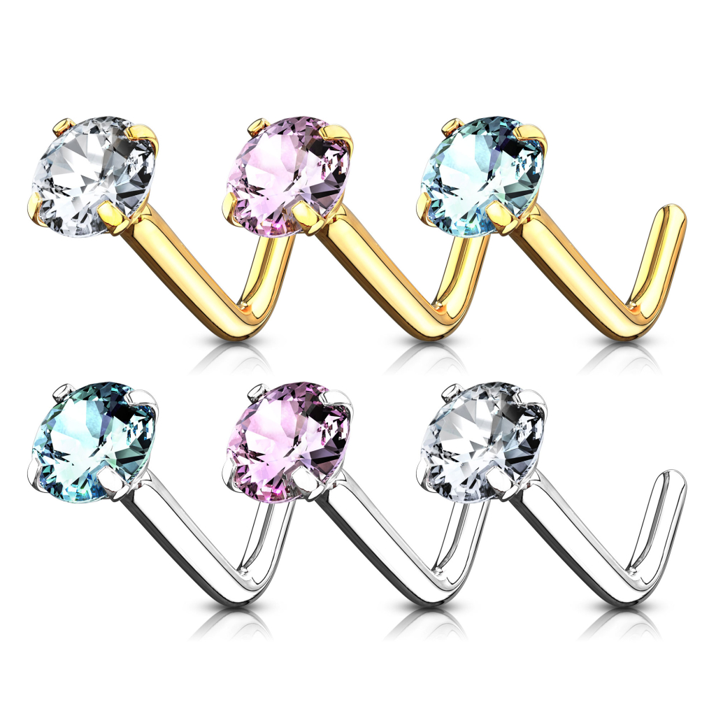 14 karátos aranyból készült, klasszikus sárga és népszerű fehér arany színekben érhető el, ami még a sárgánál is elegánsabb stílust kölcsönöz. A szárhoz illesztett kő átlátszó, türkíz és rózsaszín színekben kapható. Ha időtálló, klasszikus ékszerre vágysz, a fehér aranyt ajánljuk, átlátszó kővel. Ha inkább a nőiességedet szeretnéd hangsúlyozni, válaszd a rózsaszín köveset. De ha képtelen vagy választani, van egy jó hírünk: ez a kiváló minőségű orr piercing olyan kedvező áron kapható, hogy akár többet is vásárolhatsz belőle. :)