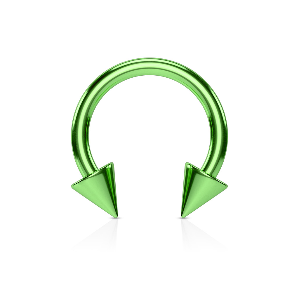 Ettől a tüskés végű patkó piercingtől garantáltan merészebbnek fogsz tűnni. Szerezd be különböző színekben ezt a vad ékszert.