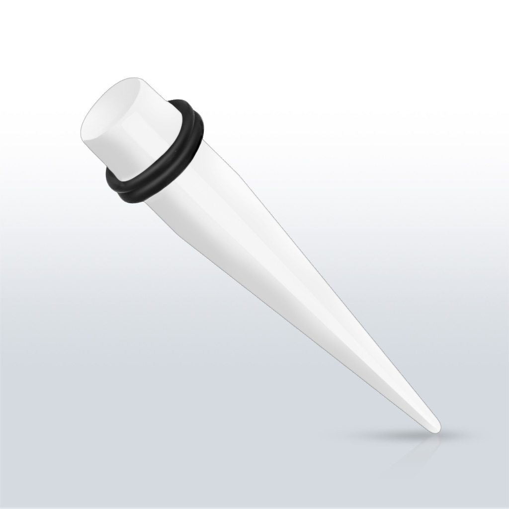 Ez a modell akrilból készült. Vedd figyelembe hogy a képen láthatóak átlátszó és teli színű modellek is, ezek között mindössze az átlátszósság a különbség. A fültágító színét és méretét magad választhatod ki. Ha 8 mm-t választassz, akkor a taper 8 mm lesz a legvastagabb végén.