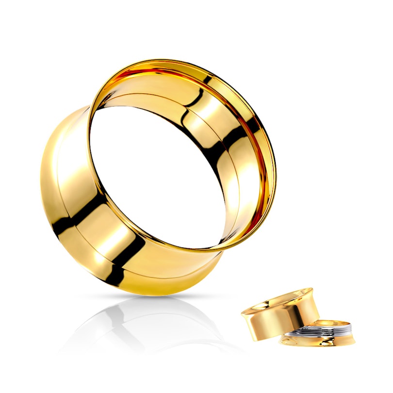 Ez a gyönyörű és különleges alagút a stílusos és klasszikus kialakításának köszönhetően remekül mutat a füledben. Az ékszer orvosi acélból készült, a színe a bevonatnak köszönhető. Az orvosi acél az egyik leggyakrabban használt anyag, az itt látható ékszer exkluzív arany bevonatot kapott.