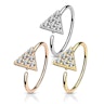 A karika elejét egy áttetsző kövekkel kirakott háromszög díszíti, az apró kövek csodásan ragyognak.