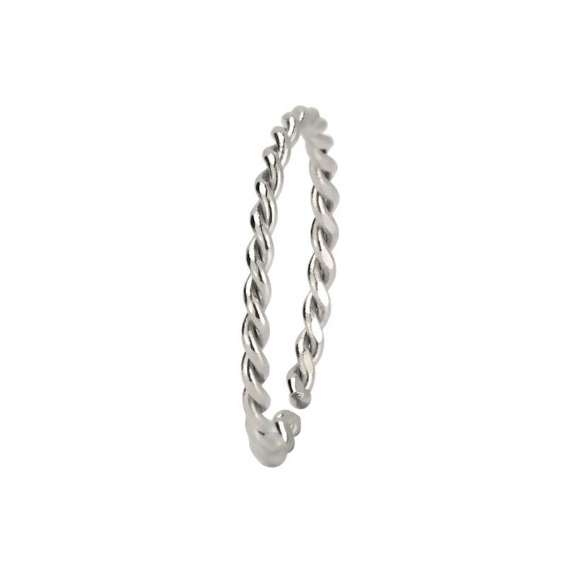 Itt láthatod népszerű végtelen karikánk egy újabb változatát. Normál végtelen karikánk egy darab fémből áll, amelynek végei összeérnek. Ez a végtelen karika viszont két darab fémből készült, melyek először összecsavartak, majd karikává formáztak. Az ékszer dizájnja szinte fonott hatást kelt. A karika végei kis heggesztést kaptak, melyet végül lekerekítettek, egyrészt hogy megkíméljék a peircinget a felhelyezés során, másrészt hogy a két fémet egybe tartsa.